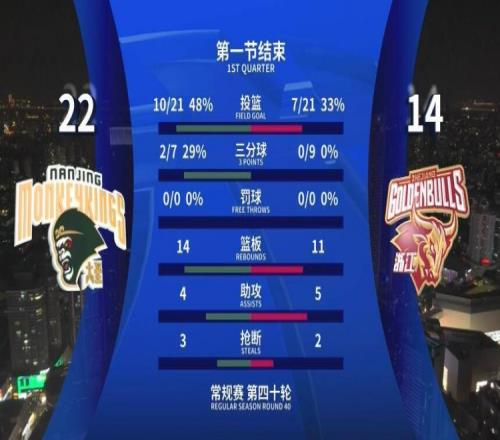 体育资讯3月14日报道宣称 CBA常规赛,浙江首节14-22落后于同曦。