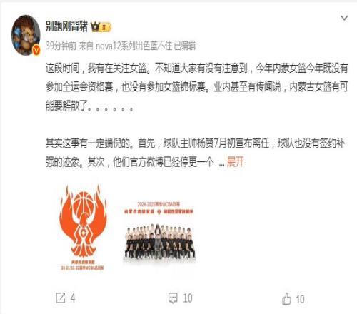 如今根据媒体人别跑刚背猪报道:“这段时间,我有在关注女篮。不知道大家有没有注意到,今年内蒙女篮今年既没有参加全运会资格赛,也没有参加全国女篮锦标赛。业内甚至有传闻说,内蒙古女篮有可能要解散了……”