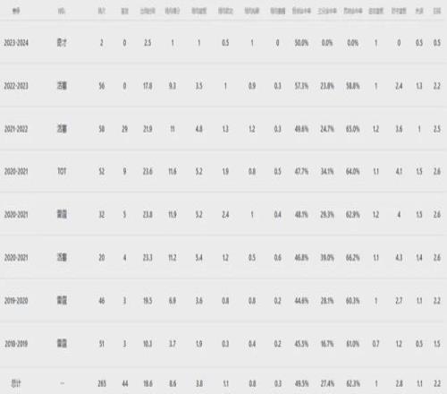 这哥们上赛季常规赛场均25.7分6板8助1.2断,三项命中率47.5%、31.3%和73.5%;季后赛则是场均19.2分4.5板5.8助1.2断,三项命中率55.2%、41.4%和63%。