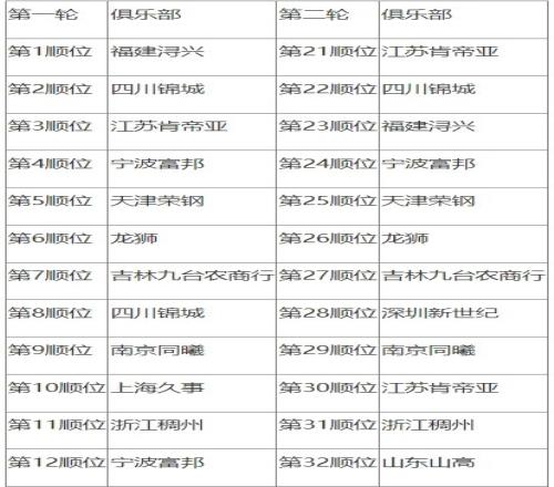宁波和四川都有3个首轮签,今年选秀大会的最终顺位如下: