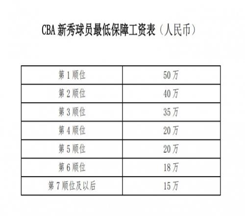状元杨曦皓最低年薪50万元,榜眼杜智博最低40万,探花庞峥麟最低35万,4号秀李苑鑫和5号秀王禹丁最低20万,6号秀逄砚钧最低18万,7号秀杨腾飞以及之后的球员最低15万。