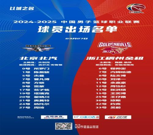 体育资讯3月27日报道宣称 今晚7点35分,北京男篮将在主场迎战浙江男篮。