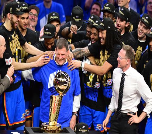 雷霆管理层也是NBA的“黄埔军校”。普雷斯蒂身边有各种能人异士,那些离开的人员普遍闯出了一片天。奇才总裁迈克尔-温格在雷霆担任过8年助理总经理,后来先加盟快船,再转投奇才。奇才总经理威尔-道金斯在雷霆工作过15年,一路从实习生晋升为篮球运营副总裁。特洛伊-韦弗在雷霆工作12年,后成为活塞总经理,现在去了鹈鹕担任副总裁辅佐杜马斯。