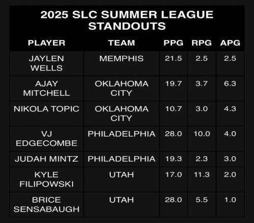 盐湖城夏联公布今年杰出球员名单:埃奇库姆&托皮奇领衔