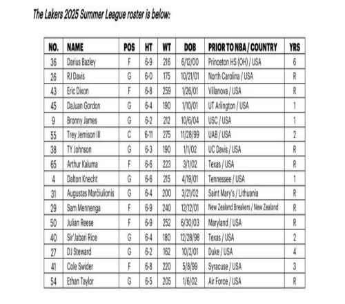 体育资讯07月03日报道宣称 湖人公布了今年夏联的安排。