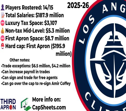 如果快船裁掉尤班克斯(保障日期26年1月10日),还能获得额外的480万美元空间。