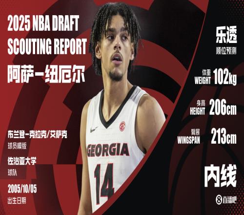 体育资讯6月26日报道宣称 NBA选秀大会,老鹰在首轮第23顺位选中了阿萨-纽厄尔。