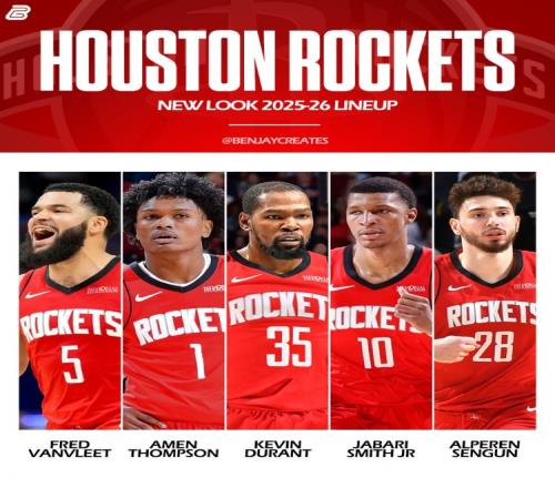 尽管杜兰特加盟前阵中没有超级球星,但火箭拥有以全明星中锋申京为首的年轻天赋阵容,以及可能是联盟最独特的天赋球员,或许已是除文班亚马外的最佳防守者阿门-汤普森。这支球队坐拥顶尖教练、顶尖防守体系,如今又增添了顶尖得分手。