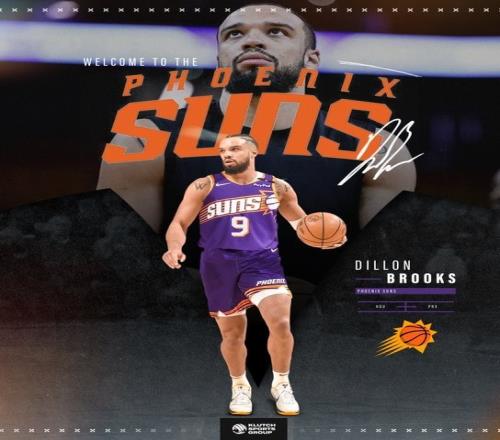 经纪公司发布了一张狄龙穿着太阳9号球衣的海报,并写道:“狄龙-布鲁克斯,欢迎来到菲尼克斯!”