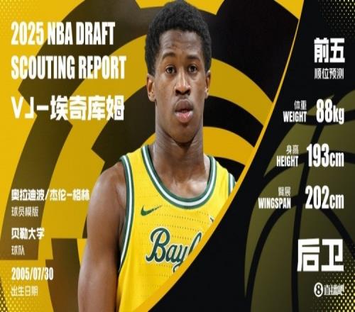 76人在乐透抽签中不仅幸运地保住了今年的首轮签,还跃升至探花签,有机会为阵容增添一名重要的天赋球员。与ESPN的选秀专家Jonathan Givony一同分析后,我们目前预测来自贝勒大学的得分后卫VJ-埃奇库姆是最有可能的探花人选,这位新秀在76人的试训取得积极反馈后已成为领跑者。