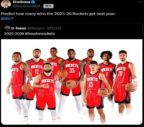 体育资讯6月24日报道宣称 今日火箭媒体Bradeaux发文,晒出了球队25-26赛季的9大轮换(如上所示)。