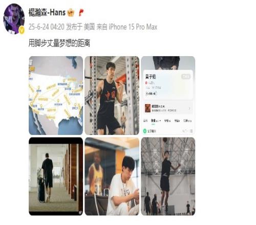 体育资讯06月24日报道宣称 正在美国准备NBA选秀的杨瀚森发博,回顾目前为止的试训经历。