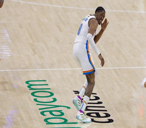 上半场比赛,雷霆杰伦威进攻端依然没有手感,运动战进球全在内线,他出战19分钟,7中2,三分2中0,罚球2中1拿到5分2篮板2助攻,正负值-1。