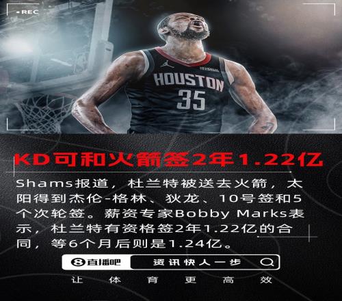 Marks:杜兰特有资格和火箭签2年1.22亿若等6个月可签2年1.24亿