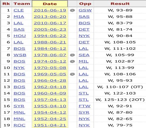 这也是总决赛历史上第20个抢七,主场球队15胜4负。