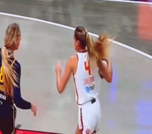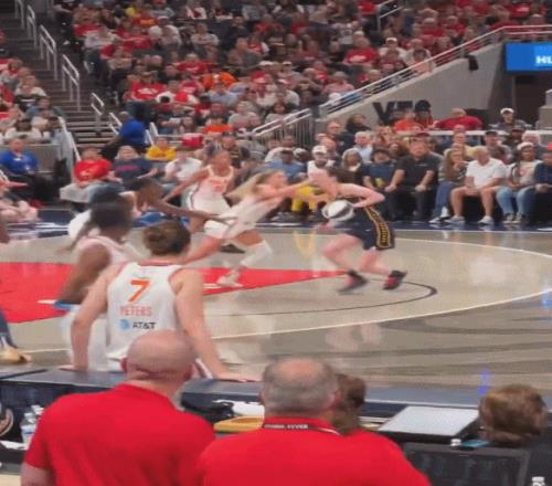 比赛中,凯特琳-克拉克被谢尔登+马布雷联手欺负了一次;