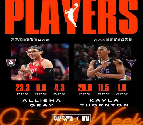 体育资讯6月18日报道宣称 今日,WNBA官方宣布,亚特兰大梦想后卫艾丽莎-格雷和金州女武神前锋凯拉-索顿当选第四周的东西部最佳球员。