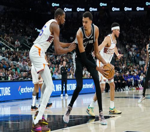 虽然我们无法穷尽所有可能性,但在结束前还是想听听你对马刺前景的简要看法。有传言称马刺并未全力参与杜兰特争夺战,他们似乎与火箭面临相似的考量,球队时间轴完全围绕21岁的文班亚马构建。你如何看待马刺的情况?