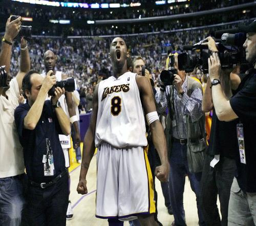 不过,他没有微笑。他没有用言语。他用一记记如匕首般的跳投刺入步行者队的心脏。接着,科比向他的队友、向球迷、向所有尚未完全理解8号球员水平的人做出了手势。