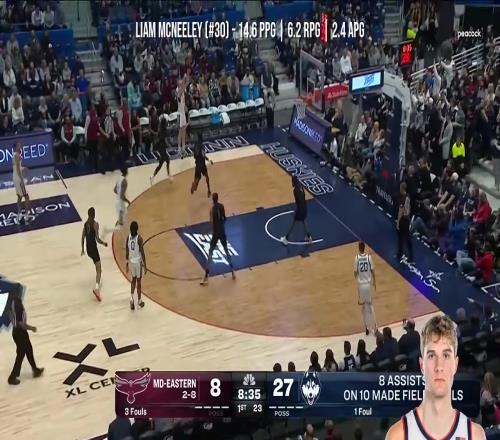 2024-25赛季,麦克尼利为康涅狄格大学出战27场比赛,场均32.1分钟得到14.5分6.0篮板2.3助攻0.6抢断0.2盖帽1.9失误,投篮命中率是38.1%,三分命中率为31.7%,罚球命中率是86.6%。