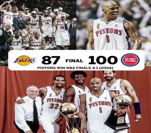 体育资讯6月16日报道宣称 2004年的今天,活塞在总决赛G5以100-87击败湖人,大比分4-1夺得总冠军。