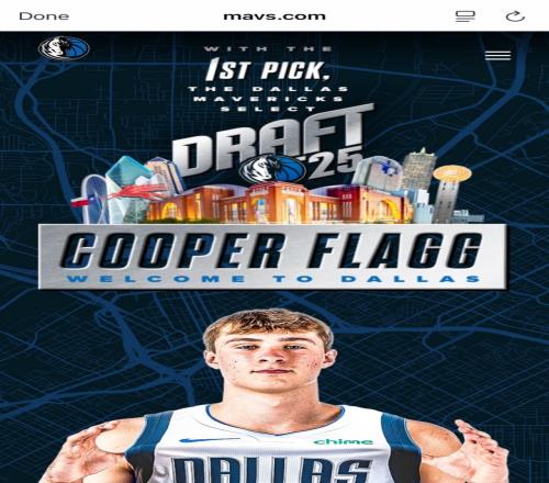 独行侠记者Kevin Gray Jr.晒出一张截图,画面上是球队官网页面欢迎弗拉格的庆祝海报:“状元,库珀-弗拉格,欢迎来到达拉斯。”不过,该海报很快就被删除了。