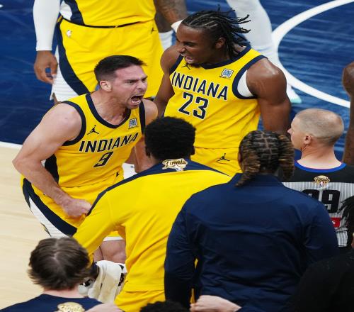 麦康纳的字典里也没有“放弃”。2024年东部决赛打凯尔特人,G3哈利伯顿因左大腿后侧拉伤缺席,0-2落后的步行者背水一战。麦康纳不断给队友传达必胜信念,他身先士卒一人轰下23分,比赛中激情四射不仅对着观众席振臂高呼,还跑到凯尔特人板凳席对着对手助教萨姆-卡塞尔大喊大叫。