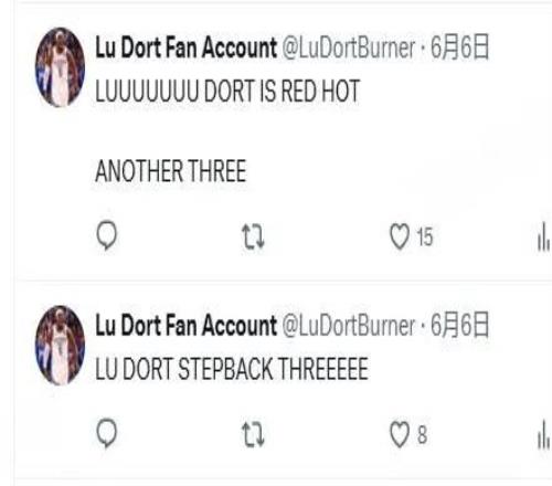 在多尔特的生涯初期,伯顿试图在他的账号上记录下多尔特的每一次得分、篮板、三分球和防守表现,但随着多尔特逐渐成为雷霆的绝对主力,这种记录方式很难再实现。不过他仍然继续分享着多尔特和雷霆队的相关动态,关注着队中的每一名球员。