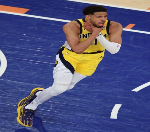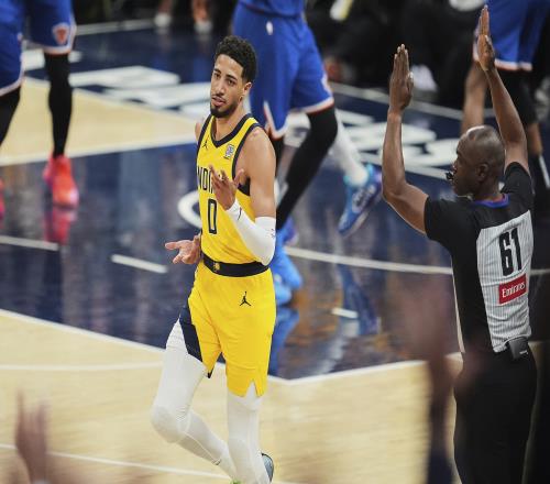 尽管步行者队友帕斯卡尔-西亚卡姆出人意料地赢得了东部决赛MVP奖项,但哈利伯顿在对阵尼克斯队时贡献了最令人难忘的表现和时刻。他在第一场比赛中的标志性投篮(以及瞬间成为梗图的反应)将被收录进下一代NBA季后赛的预热视频中。此外,哈利伯顿在东部决赛第四场还上演了大师级表现:32分、15次助攻、12个篮板、4次抢断且零失误。