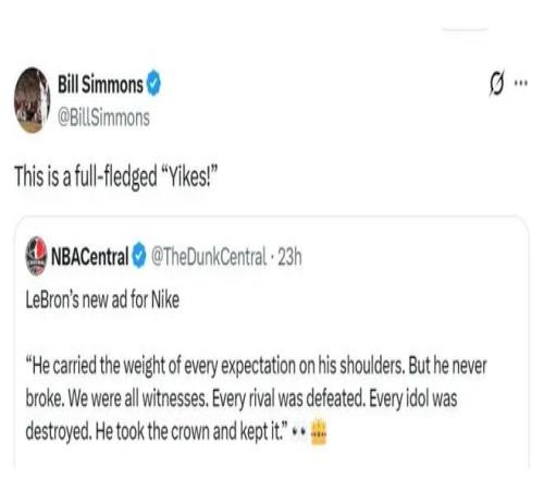 在这样的背景下,当耐克在广告中声称詹姆斯“击败了所有世仇、摧毁了所有偶像”时,外界自然会把这些年的成绩翻出来质疑。而在耐克的官方账号下,不少球迷更是毫不留情的留言反驳: