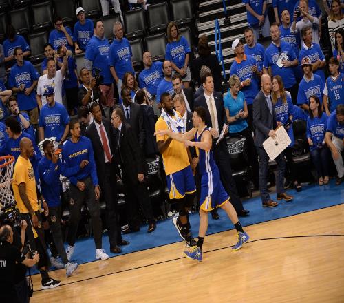 2016年的西部决赛可谓是针尖对麦芒的对决,雷霆凭借着杜兰特和威少的双少组合,常规赛取得55胜排名西部第三,并且在此前次轮淘汰了赛季取得67胜的马刺,可谓来势汹汹;而勇士则是创下了常规赛73胜的历史最佳战绩,库里更是全票当选常规赛MVP,掀起了小球时代的革命。