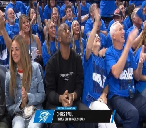 就在亚历山大接过今年的MVP奖杯时,他注意到一个可疑的身影。场边有个男子坐在自己妻子海莉的身旁。在雷霆此前的比赛中,他从未见过此人出现在场边座位上。这位雷霆后卫还没来得及皱眉,就认出了这位意外来客:昔日队友兼人生导师克里斯-保罗。