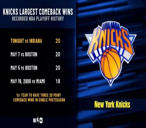 尼克斯逆转20分平队史季后赛纪录单个季后赛3次逆转20+历史首队