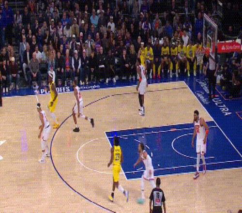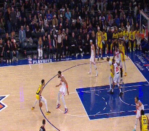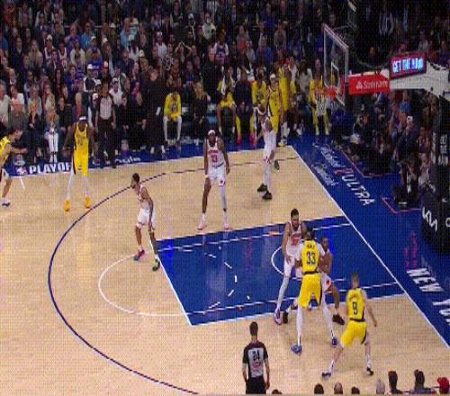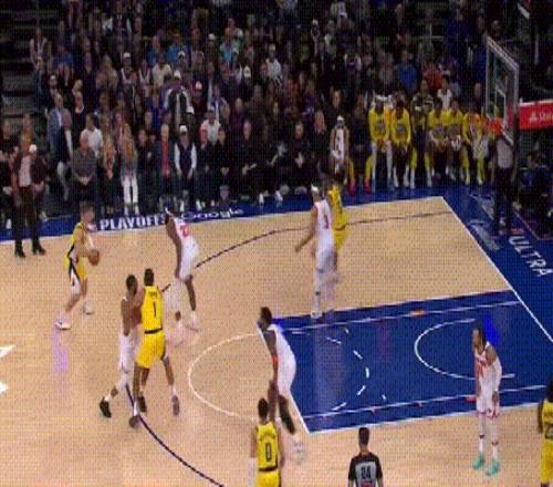 锡伯杜还是不能对步行者的三分反应过度。季后赛至今,步行者三分命中率依旧保持在40.8%,对尼克斯两场手感没有回调的意思,这很让防守头疼。但三分不是尼克斯没防住的全部内容,转换、早期进攻、错位单挑、挡拆和无球,这些都拍在了尼克斯脸上。有些可说步行者厉害,有些也实在是尼克斯防的不好。类似于下面的错误不能总犯: