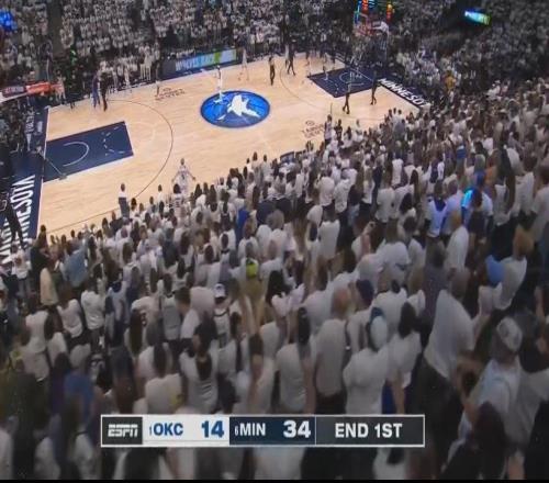 体育资讯05月25日报道宣称 西决G3,森林狼首节34-14领先雷霆20分。