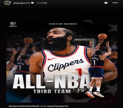 体育资讯5月24日报道宣称 今日2024-25赛季NBA最佳阵容出炉,快船球星哈登入选最佳阵容三阵。
