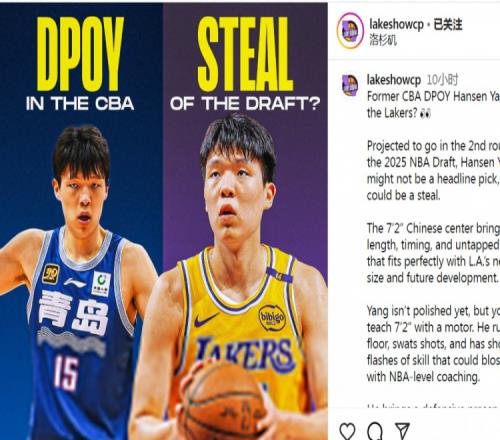 Lakeshow写道:“前CBA最佳防守球员杨瀚森有望加盟湖人?