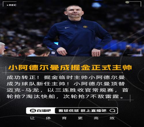 顶替冠军教头小阿德尔曼成为掘金正式主帅此前带队进第二轮