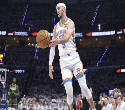 雷霆在与掘金的鏖战中成长了太多。次轮G1输给掘金时,雷霆曾迫于无奈将破联防的希望寄托于哈尔滕施泰因的抛投。但G7,杰伦-威廉姆斯的持球成了雷霆破联防的关键。到了西决G2,雷霆破联防最常用的招数是无球人给受困于联防的持球手亚历山大做一个掩护或假掩护,然后顺势往中路下顺,打到森林狼2-3联防的中路真空区域。第二节中段,雷霆连续破联防成功,阿隆-维金斯在中路接球策应、卡鲁索在中路命中中投+抛投,破解联防。