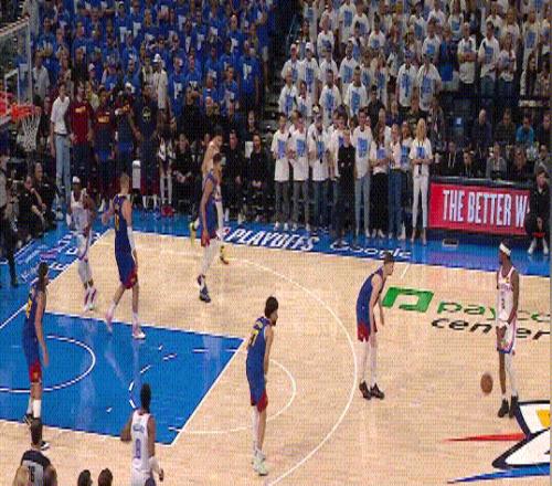 找底线空切成了雷霆G5获胜的关键。再往前推,掘金不管是联防还是盯人,严堵中路,限制SGA突破,这又是掘金赢球的关键之一。雷霆发现,掘金不管是32联防、131联防还是盯人做弱延误,重心都在罚球线附近,而这又是SGA、杰伦突破,中锋接球的关键位置。这个位置被掐住了,雷霆进攻会很被动。