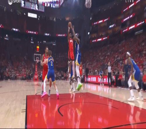 首轮G2,勇士客场94-109不敌火箭,巴特勒在比赛的第一节抢篮板时被阿门-汤普森绊倒,随后因骨盆&臀部深层肌肉挫伤缺席了系列赛的G3。