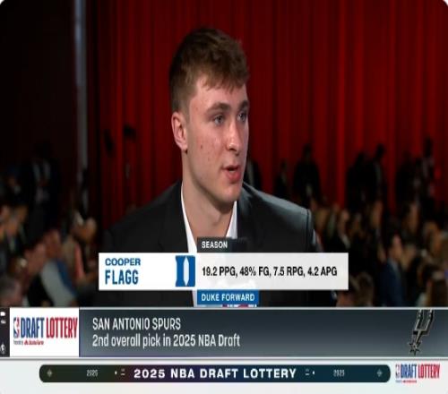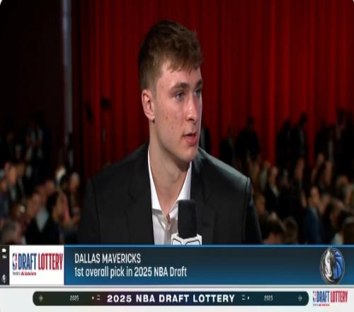 体育资讯05月13日报道宣称 NBA乐透抽签仪式今天在芝加哥进行,独行侠最终以1.8%的概率抽中了状元签。在现场观看抽签仪式的2025年状元大热弗拉格接受了节目主持团的采访。