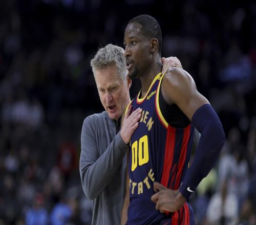 然而当下的勇士已没有挑三拣四的资本。失去库里这座粮仓后,他们彻底沦为乞丐。科尔在系列赛G2不断扫视替补席,乞求着每一分的进账。饥肠辘辘的勇士进攻体系,再也经不起将库明加束之高阁的奢侈。无论是这场G2,还是即将回到旧金山的主场战役,甚至可能贯穿这轮西部半决赛的每一分钟。
