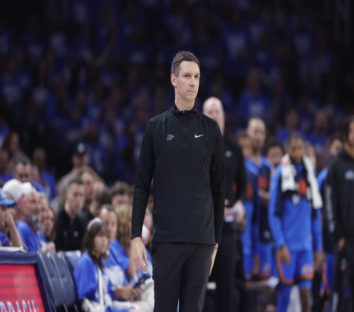 点球战术的本意是不让掘金出手绝平三分,但前提是自己要把球罚进。约老师干扰发球人起到了效果,球被迫发到了霍姆格伦手上。这也是掘金和雷霆博弈的关键点,只要接球人不是亚历山大,掘金就有一线生机。