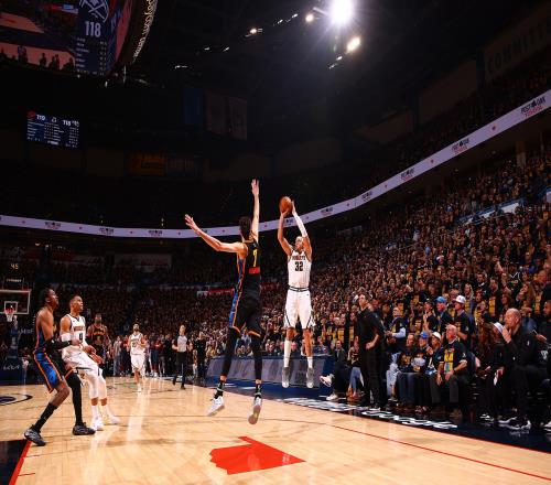 掘金虽然被雷霆抢断12次,但此役总出手数仅比雷霆少了5次(95-100),两队同样命中42个进球,掘金投篮命中率44.2%甚至还高于雷霆的42%。