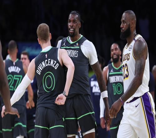 即便森林狼也摆出“小阵容”,他们的身材体型依然占优。纳兹-里德成为湖人防守端的梦魇(特别是第四节),兰德尔在禁区翻江倒海的表现屡屡摧毁湖人防线,而爱德华兹更是在得分后卫的位置上堪称巨无霸。森林狼在三场胜利中两次统治了篮板球,另外一场与湖人持平。更致命的是,湖人在G5开打前已无任何调整阵容体型的余地。