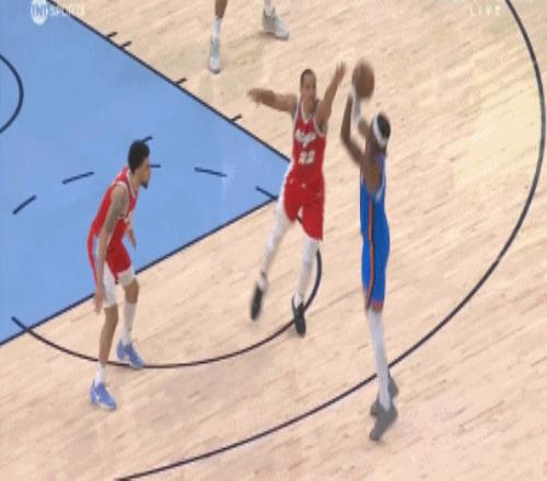 亚历山大三不沾投出界,雷霆认为贝恩犯规了,直接挑战出界球