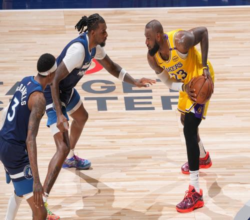 老康利曾在2012-13赛季入选最佳防守二阵,他此役贡献了9分4助1断,换防对位里夫斯和八村塁的防守回合打出了防守第一道关卡的硬度和韧性。当湖人啃不动森林狼理论上最弱的防守者老康利,老詹、东契奇、里夫斯攻坚华子、麦克丹尼尔斯、兰德尔、迪文岑佐、沃克换防的难度可想而知。