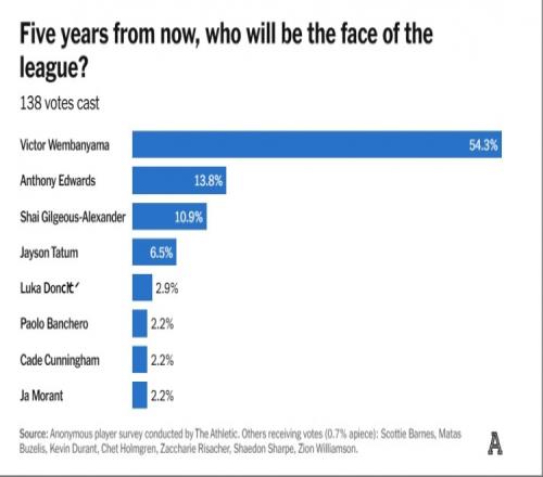 在本次调查中,共有75名球员至少获得了一票,但我们将重点关注得票率超过3%的前四名球员。