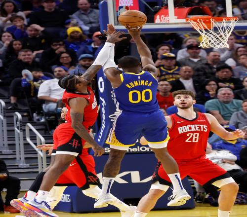 勇士只能利用库有引力发起阵地战进攻,库里挡拆点名申京/海王是勇士好用的起手式。火箭也准备充分,双人夹击库里,其他人轮转补内切——不给勇士必进的两分球,考验勇士其他人的边角三分抽奖效率。